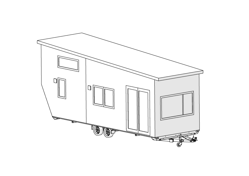 The Kevin is a contemporary medium to large sized tiny house. The house can sleep two persons full time.